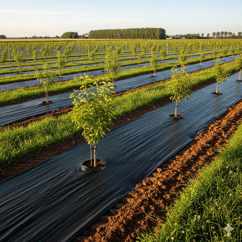 Hóa ra, "người vệ sĩ" mà anh nói là một tấm bạt màu đen được trải gọn gàng trên khắp các luống cây. Trông thì đơn giản vậy thôi, nhưng nó lại là cả một cuộc cách mạng. Bà con mình không còn gọi nó là tấm bạt nữa, mà gọi nó bằng một cái tên trìu mến hơn: tấm áo giáp của đất.