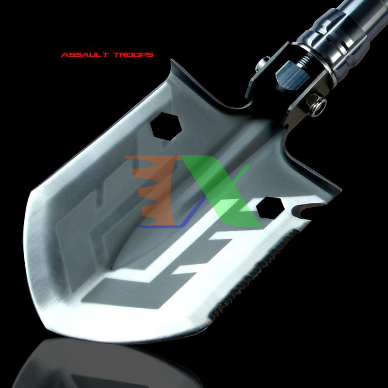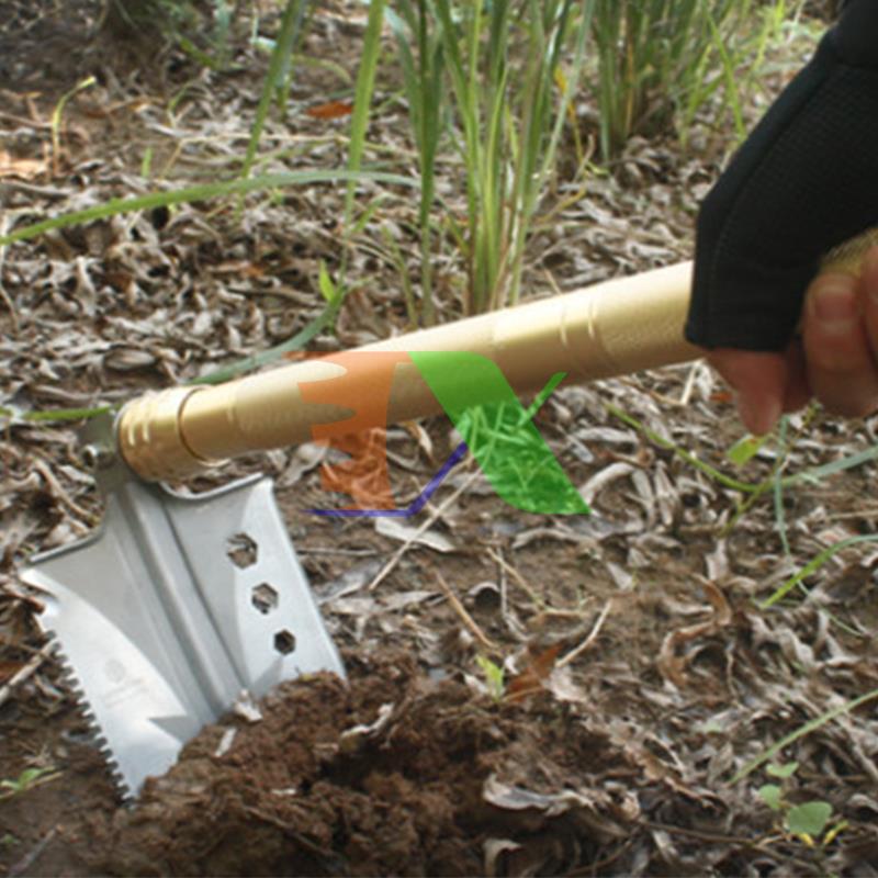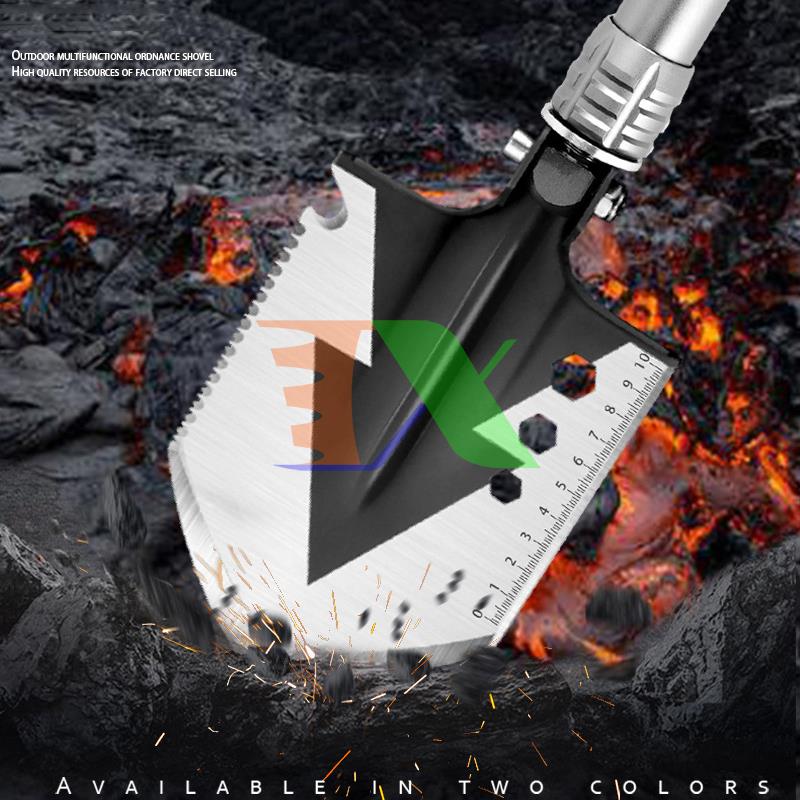 + Xẻng có thể gấp 90 độ thành cuốc, trên lưỡi có một bên là lưỡi dao, một bên là răng cưa tùy chọn để sử dụng