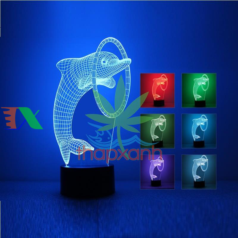 Đèn ngủ, đèn trang trí Led 3D, Đèn ngủ 7 màu mini (đỏ, xanh lá cây, xanh nước biển, vàng, xanh, tím, trắng) thiết kế hiện đại với hình khối sắc nét, ánh sáng êm dịu, mang hơi thở đại dương, đưa bạn và em bé vào giấc ngủ ngon. Dễ dàng thay đổi mày sắc bằng nút bấm điều chỉnh