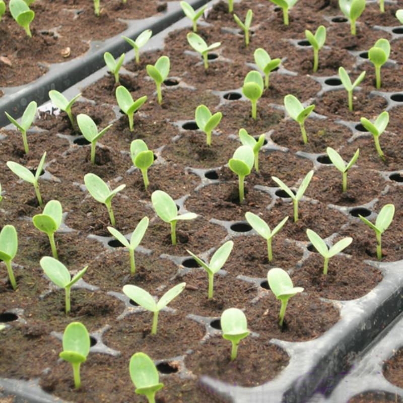 - Một khay 32 hoặc 50 lỗ lại phù hợp cho cây công trình, cây ăn quả, giúp dễ tách bầu khi trồng ra đất.