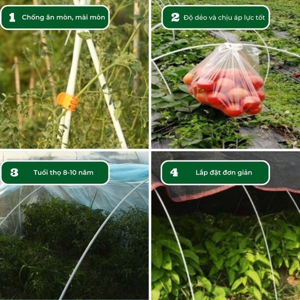 Lắp đặt đơn giản: Dùng cọc cố định dưới đất, uốn cong nan thành vòm, phủ màng PE hoặc lưới lên trên.