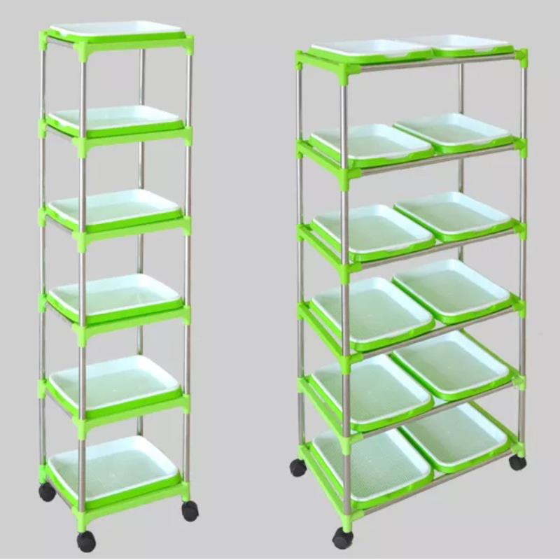 Một ưu điểm khi sử dụng khay mầm trồng là bộ kit trồng rau mầm có kèm bánh xe, thuận tiện vận chuyển.
