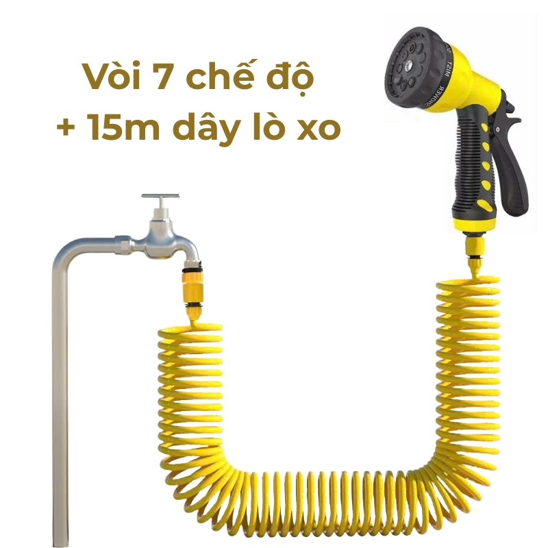Hiện nay, các bộ vòi xịt chất lượng cao còn được thiết kế với nhiều phiên bản màu sắc để chiều lòng gu thẩm mỹ của gia chủ. Tùy vào sở thích và tone màu của khu vườn, bạn có thể chọn bộ vòi xịt nước tưới cây 7 chế độ kèm 15m ống EVA màu vàng (BTN-15A7) rất nổi bật, dễ dàng nhìn thấy trên nền cỏ xanh để tránh bước nhầm.