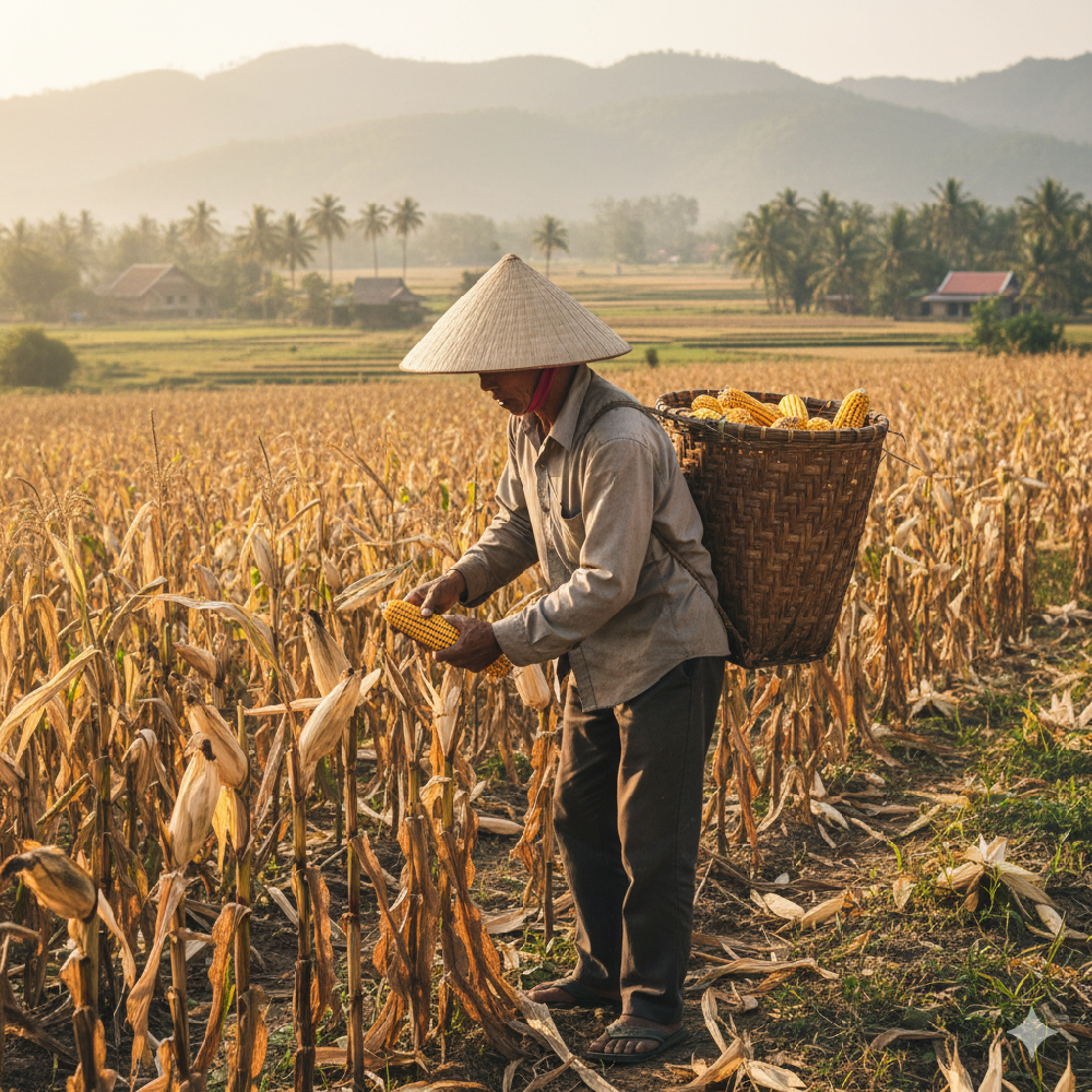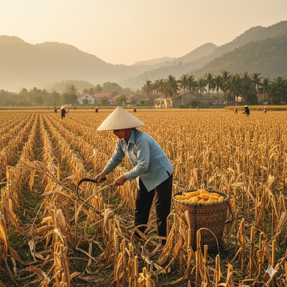 Ngày còn bé, tôi nhớ mùa thu hoạch bắp (ngô) là mùa vui nhất, nhưng cũng là mùa cực nhất. Cả nhà, cả xóm túa ra đồng từ lúc mặt trời chưa kịp ló. Tiếng cười nói râm ran, tiếng bẻ bắp "rốp rốp" vang khắp cánh đồng. Vui thì vui thật, nhưng sau cái vui ấy là những tấm lưng áo đẫm mồ hôi, là những đôi tay phồng rộp, chai sần vì lớp vỏ bắp vừa khô vừa sắc.