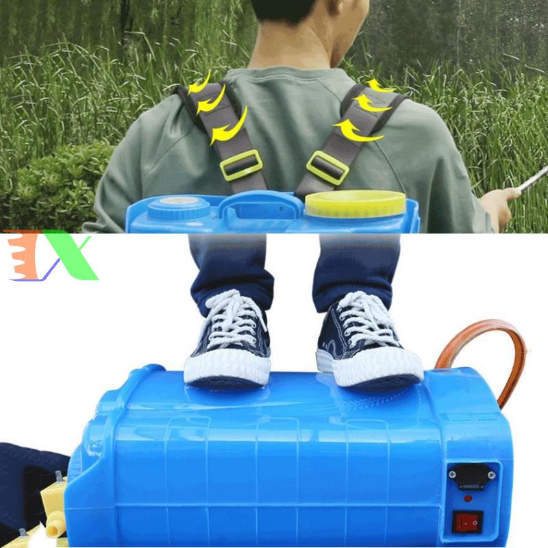 - Có thể điều chỉnh được áp lực phun thông qua bộ chiết áp, tạo ra hiệu quả phun sương cực kỳ tốt cho từng loại cây trồng. Bình chứa rộng nên chứa được tối đa 18 lít nước, nhờ đó, tùy vào sức khỏe của người dùng mà có thể pha lượng nước vừa phải, giúp tiết kiệm thời gian pha thuốc nhiều lần.