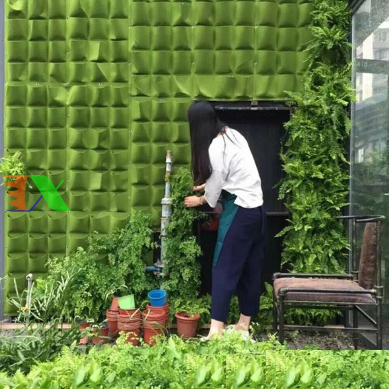 Vườn đứng: Sử dụng túi treo tường, tiết kiệm diện tích, thẩm mỹ cao.